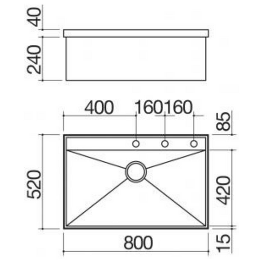 Barazza lavello 1LMZ81 MIZU da 80×52 1 vasca con abbassamento incasso bordo 40 mm