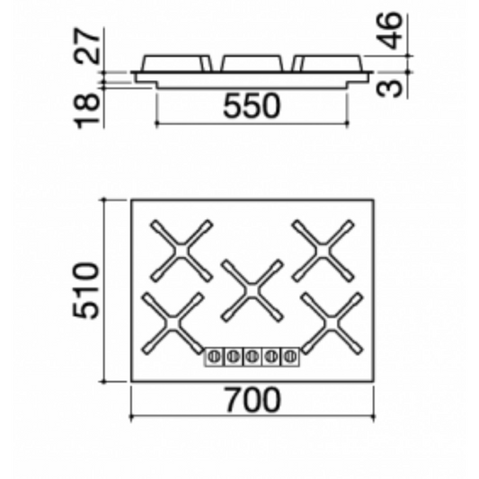 Barazza 1PUN75 Piano cottura Unique incasso da 70 cm 4 gas + tripla corona