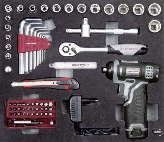 Valigetta attrezzi Kraftwerk B152, 1/4+ 3/8 104 pezzi, con avvitatore a batteria, 202.152.000