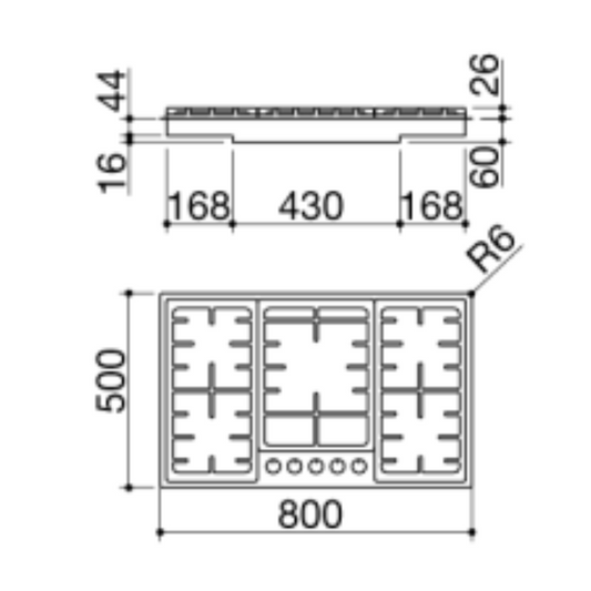 Barazza 1PMD64 Piano cottura Mood Fusion incasso da 65 cm 3 gas + 1 doppia corona Flat Eco-design