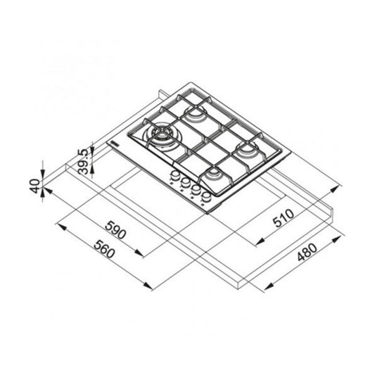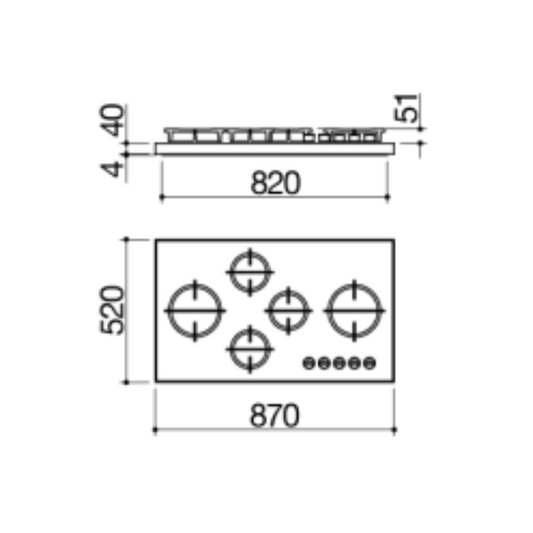 Piano cottura Barazza 1PKM90N KASAI MOOD da 90 cm 4 GAS + doppia corona Flat Eco - Design